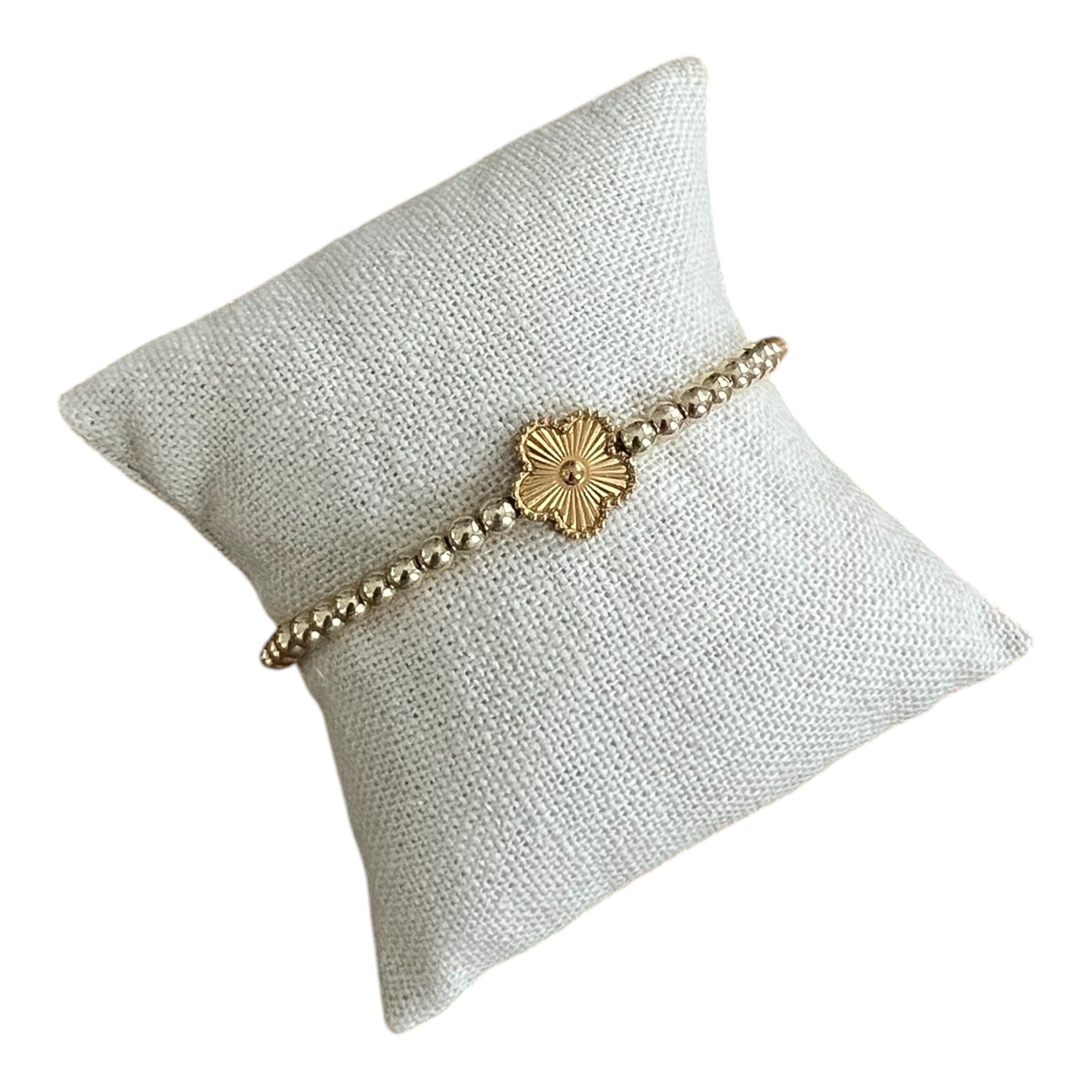 All Pansy Day bracelets are strung on a 7 inch elastic band and feature a signature turquoise bead near the clasp.